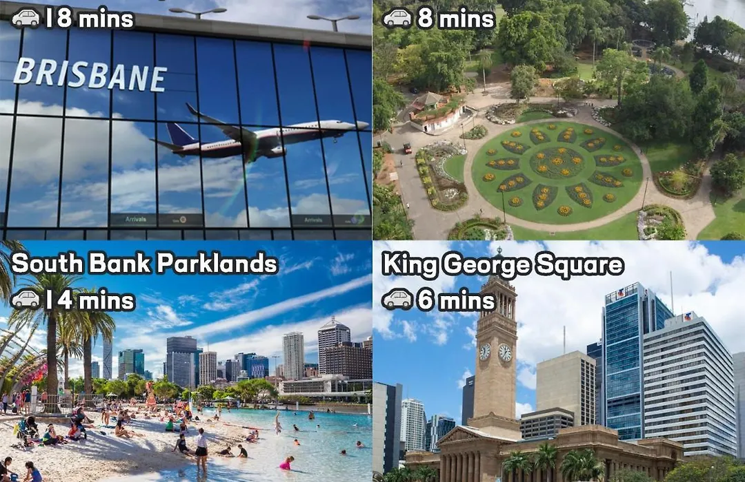 Das Apartment ist mit einer voll ausgestatteten Küche ausgestattet, die einen Kühlschrank, Küchenutensilien und einen Geschirrspüler enthält, um Ihren Komfort zu gewährleisten. Der Flughafen Brisbane ist nur in 16 Minuten mit dem Auto erreichbar.